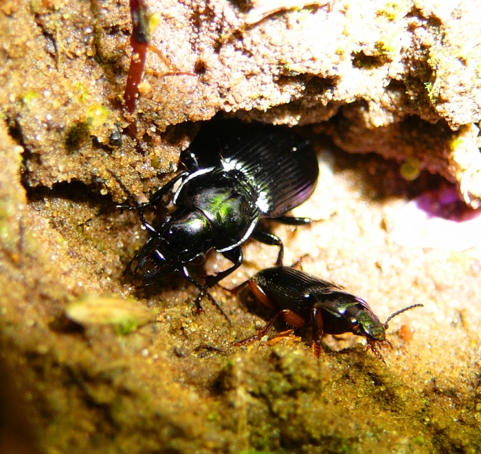 dit zijn twee verschillende soorten van loopkevers (Carabidae). Op basis van deze foto is het moeilijk uit te maken om welke soorten het gaat. Op het internet staan heel wat goede afbeeldingen van Carabidae en ik vermeld hieronder een mooie website in dat verband. Als je je kevers vergelijkt met deze foto's kom je al een heel eind verder.