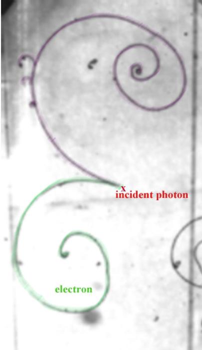 Omgekeerd kan een gammafoton, waarvan de energie ten minste 2x 511 keV is aanleiding geven tot paarcreatie van een elektron-positron paar. De bijgevoegde foto toont de sporen van zo'n paarcreatie in een bellenkamer van een deeltjesverneller van CERN. In de kamer heerst een magnetisch veld waardoor het elektron en het positron elk een tegengestelde richting opdraaien, wegens hun tegengestelde lading.