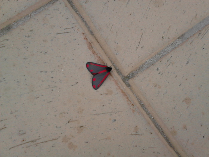 dit is een vlinder, en meer bepaald de sint-jacobsvlinder Tyria jacobaeae (familie Erebidae, spinneruilen). Deze vlinder komt vooral voor op zandachtige gronden (duinen en heiden), maar ook op andere plaatsen zoals tuinen, bosranden en moerasachtige gebieden. De soort overwintert als pop in de grond en de vlinder komt te voorschijn in april en vliegt dan tot in augustus. De eitjes worden gelegd op kruiskruidsoorten, waarbij vooral jakobskruiskruid een voorkeur heeft. De rupsen (zebrarupsen genoemd) voeden zich op dit kruid. Er is één generatie per jaar. Vermeldenswaardig is dat de rupsen de giftige stoffen uit het jakobskruiskruid opslaan in hun lichaam, dit maakt hen onaantrekkelijk en niet eetbaar voor hun natuurlijke vijanden.