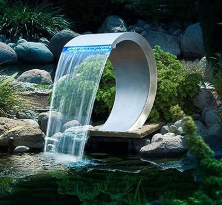 Soms zie je in tuincentra consoles voor in de tuin, bestaande uit een reservoir en een vlakke overlooprand langswaar water in een vertikaal vlak naar beneden stroomt (valt).