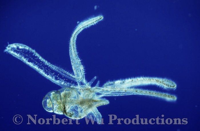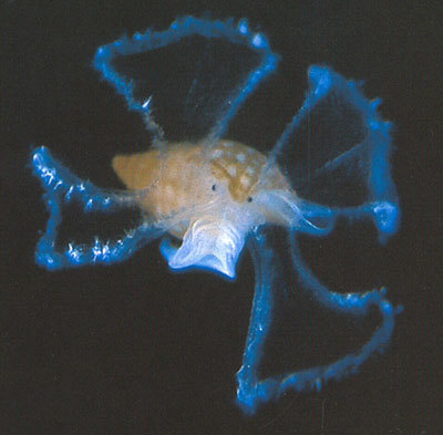 Sommige zeeslakken doen het nog anders: zij produceren eitjes die ze in het water laten rondzweven tussen het plankton (dat zijn al die microscopisch kleine diertjes en plantjes die in water rondzweven). Uit die planktonische eitjes kruipt dan een héél klein larfje dat geen huisje heeft en dat eigenlijk ook helemaal niet lijkt op een slakje. Dat larfje noemt men de Trochophora-larve en het blijft tussen het plankton zweven, waar het zich zal voeden en groeien. Als het larfje dan groot genoeg is (maar voor ons blijft het nog altijd microscopisch klein) gaat het een gedaantewisseling ondergaan waardoor een nieuw type van larfje ontstaat dat men de Veliger-larve noemt. Die Veliger-larve heeft nu wel een een huisje en naarmate dit larfje dan groter wordt, wordt het huisje zwaarder en zinkt de larve naar de bodem, waar ze zich verder zal ontwikkelen tot een volwassen slak.