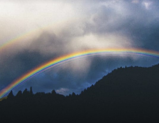 Een soortgelijk verschil is er tussen de kleuren binnen een regenboog. Blauw, groen, geel, rood licht...en alle schakeringen ertussen: we zien ze als verschillend maar telkens zijn het golven van gelijke aard, die enkel verschillen in golflengte. Blauw licht heeft een kortere golflengte dan rood licht. Maar de kleuren blauw, groen, geel, oranje, rood zijn ook niet duidelijk van elkaar gescheiden. Blauw loopt naadloos over in goen, groen in geel, etc. Er is nergens een grens tussen die kleuren, en de namen van de "verschillende" kleuren zijn tenslotte maar conventies tussen mensen, genoeg om kleuren te onderscheiden maar ook niet te veel om het handelbaar te houden.