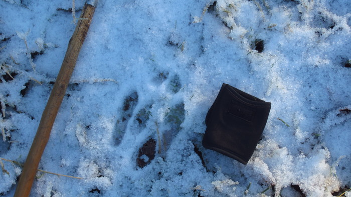 Op basis van de opgegeven lengte (15 cm) van de achtervoeten en de terreinomstandigheid, was het wellicht een haas.