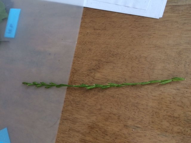Als je me vraagt toch een naam te kleven op de plant van de foto, dan zou ik zeggen dat het een aar (= bloeistengel) is van Engels raaigras (Lolium perenne), een grassoort die je in bijna elk grasland van ons land kan aantreffen.