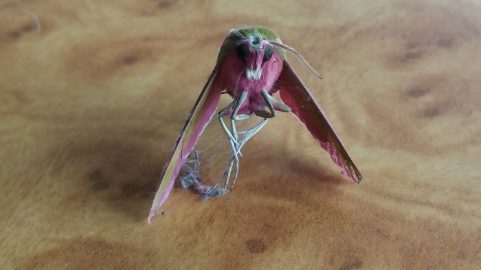 dit is een pjjlstaartvlinder, en meer bepaald Deilephila elpenor, in het Nederlands "groot avondrood" genoemd (familie Sphingidae, pijlstaarten).