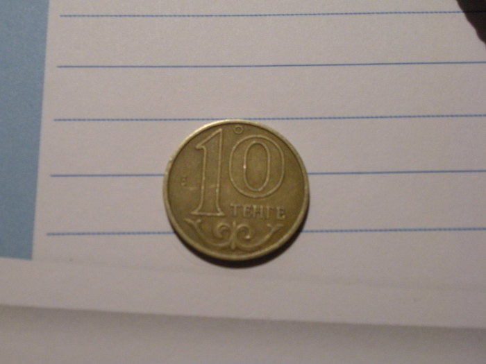 Het is een stuk van 10 Kazachse теңге (spreek uit als "tenge").