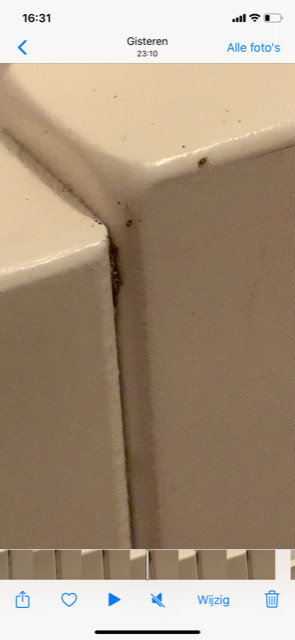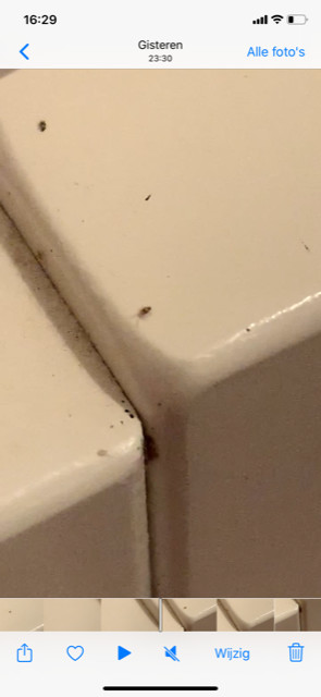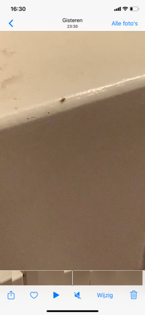 Dit beestje zat in het hout van het bed, beschut in een groef. Later bleek deze door heel de slaapkamer te zitten. Niet alleen verstopt, maar ook in de kledingkast, muur. Zitten graag in groepjes.