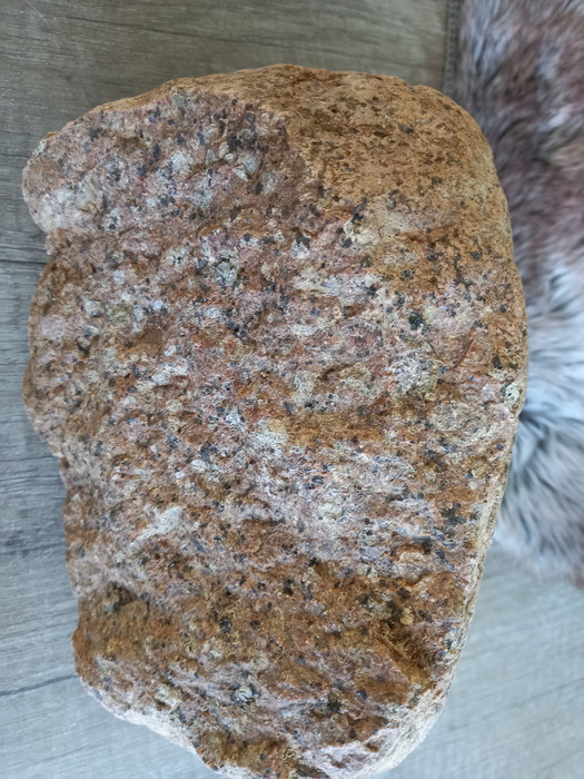 Beste Patrick Dat is belangrijke informatie, want dan gaat het met zekerheid om een zwerfsteen van graniet die tijdens een glaciaal maximum ("ijstijd") met een enorme gletsjer vanuit Scandinaviƫ in Nederland terecht is gekomen. De steen is dus eigenlijk een klein neefje van de enorme zwerfstenen van de hunebedden.