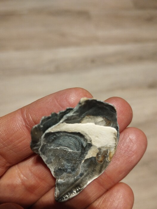 De platte oester wordt (volgens Wikipedia) o.a. in het Grevelingenmeer, dus achter de Brouwersdam, gekweekt. Die kweek zou dus de bron van deze schelp kunnen zijn. Het zou echter ook een fossiele schelp (Holoceen, of Eemien) kunnen zijn. Je merkt op dat de schelp niet doorzichtig is, wat er op zou kunnen wijzen dat het inderdaad een fossiele schelp is.