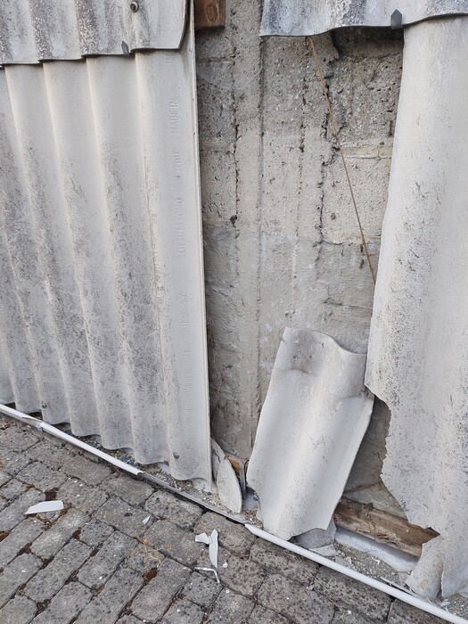 Er vinden wekelijks sportlessen plaats op de parking met aanpalend een gevel vol asbsestplaten, waarvan er enkele gebroken zijn en waarbij de afgebroken stukken op de parking liggen tegen de muur. Ik vraag me af of de spullen die we daarvoor gebruiken zoals bv. sportmatjes ook asbestvezels kunnen opnemen en meedragen naar binnen, nu de lessen binnen worden gegeven en die daar mogelijks blijven circuleren. Daarnaast vraag ik mij af in welke mate de blootstelling risico’s met zich meebrengt op het opnemen van asbestvezels via haren, kleding en schoenzolen. Hoe zorgwekkend is deze situatie? De eigenaar van het gebouw werd intussen al in kennis gesteld.