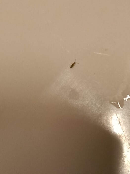 Dit beestje is een springstaart, mogelijk een huisspringstaart. Springstaartjes zijn volledig ongevaarlijk en onschadelijk, ze kunnen niet bijten of steken. Ze leven graag in een vochtige omgeving met rottend plantaardig materiaal. Als je er overlast van ondervindt, kan je best eens kijken of er ergens rottende planten, mossen of schimmels in de buurt van je huis liggen en deze verwijderen. Ook kan je proberen de ruimte waar de springstaartjes binnenkomen wat te verluchten, want vermoedelijk is daar veel vocht aanwezig waar de diertjes op af komen.