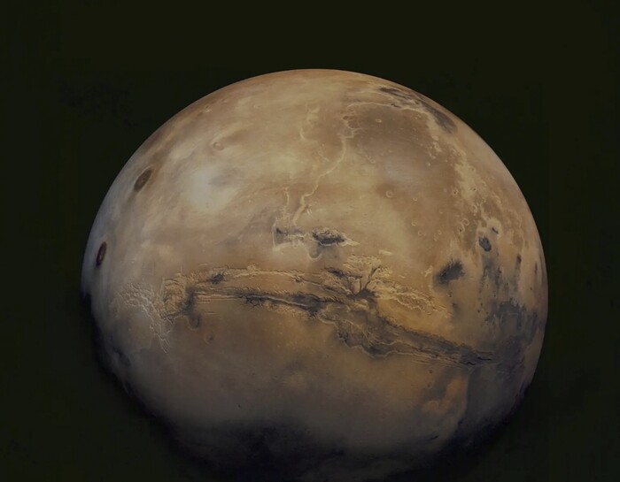 Als u naar de gehele foto van Mars die u opstuurt kijkt, dan valt het wellicht op dat het noordelijke halfrond vrij glad is en het zuidelijke nogal hobbelig. Een verklaring daarvoor is een impact van een vrij groot object (meer dan 500 km in diameter) vroeg in de Marsgeschiedenis, in het noordelijk halfrond. Die impact heeft dus de planeet niet vernietigd, maar wel door de hoge impactenergie de noordelijke massa's doen smelten, en bij het stollen is een netjes glad oppervlak ontstaan. Dit scenario wordt ook ondersteund door de ietwat peervormige structuur van Mars: er zit meer massa in het zuiden dan in het noorden, want de impact heeft het zwaartepunt naar beneden geduwd. Inderdaad, zowat het gehele noordelijke halfrond van de planeet bevindt zich onder de 'zeespiegel' (tussen aanhalingstekens, want er is geen zee), terwijl de zuidelijke kant erboven zit.
