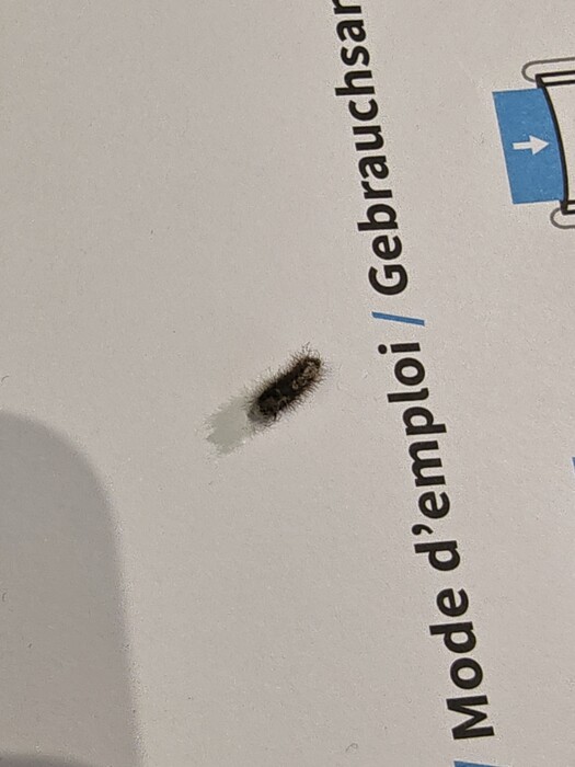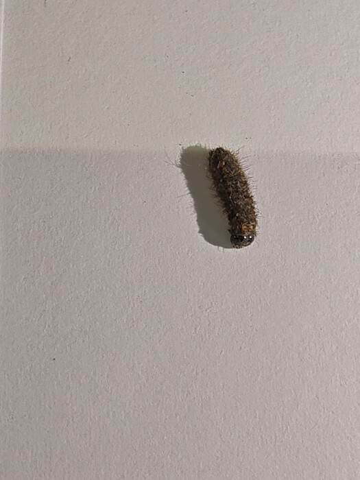 Dit ziet eruit als de gedroogde huid van de larve van een tapijtkever (Anthrenus verbasci) of de museumkever (Anthrenus museorum) of een verwant uit de familie van de spekkevers (Dermestidae).
