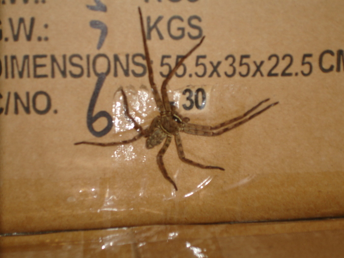 Bij het uitladen van een container afkomstig uit China vonden we deze spin.