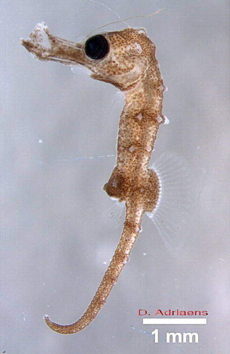 Dit alles maakt dat de embryo’s zich volledig kunnen ontwikkelen in een beschermde omgeving, zonder dat ze een vrijlevende fase moeten kennen waarbij ze nog een metamorfose moeten ondergaan (van een larve die nog teert op een dooierzakje, tot een zich actief voedende larve). Jonge zeepaardjes worden dan ook geboren als kleine zeepaardjes (terwijl larvale vissen er meestal helemaal anders uitzien dan hun ouders). In de bijhorende foto kan je zo een pasgeboren zeepaardje zien (aan de hand van de bijhorende maatstreep heb je ook een idee van de afmeting van dat beestje).