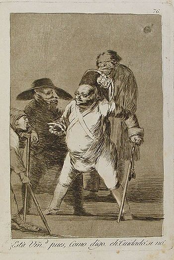 (Afbeelding: een 18de-eeuwse print van Francisco de Goya, met in het onderschrift de afkorting "Vm~d" voor 'vuestra merced').