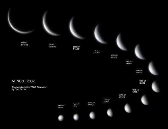 De 2de foto toont een montage van de scbijngestalten van Venus.