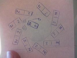Het is vaak moeilijk om de redeneerfout bij een zogenaamd perpetuum mobile te vinden. Ik heb de indruk dat er een evenwichtpunt zit tussen twee vaste magneten en dat de roterende magneet daar uiteindelijk in rust komt.